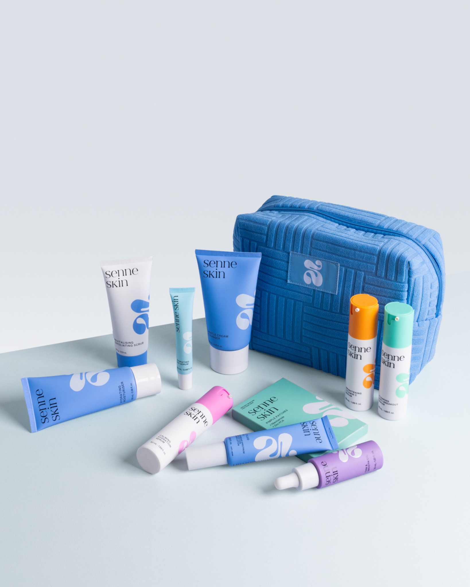 The entire Senne Skin lineup - designed to calm, clear, hydrate and protect, morning and night.