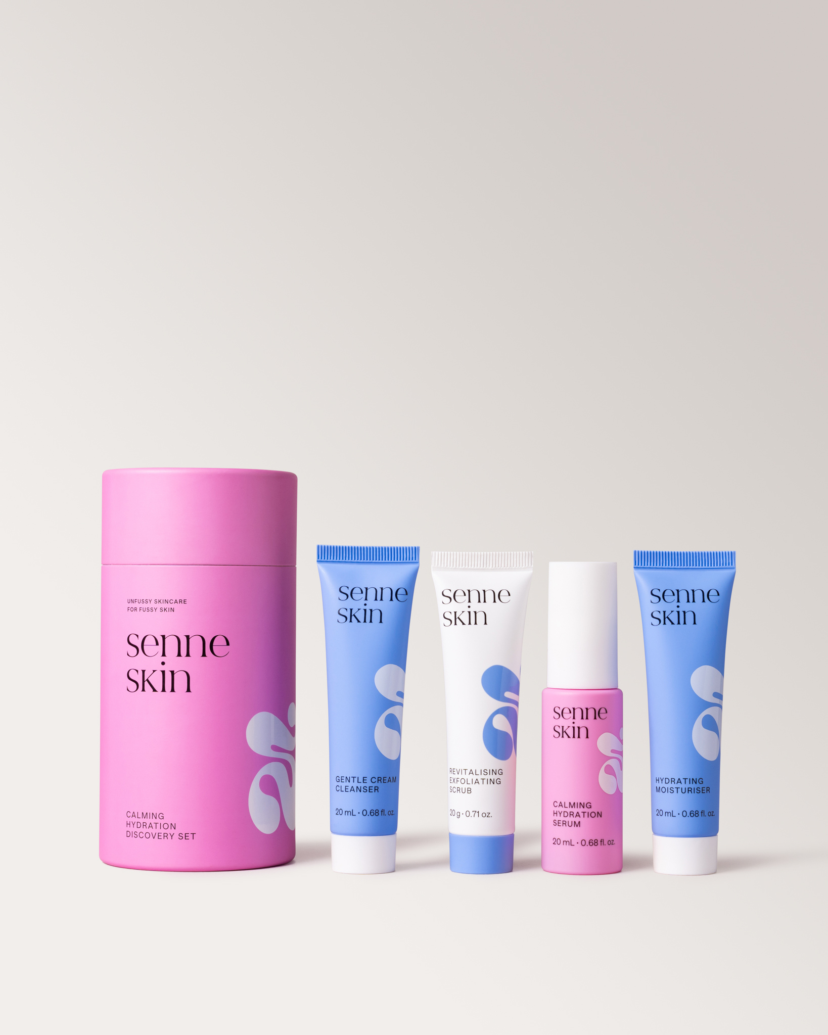 Find comfort in our Calming Hydration Discovery Set. Designed with ingredients known to help visibly reduce the appearance of redness and provide hydration, leaving your skin nourished and soothed.